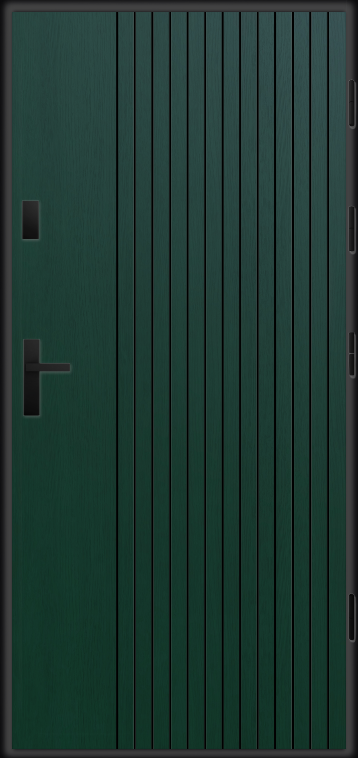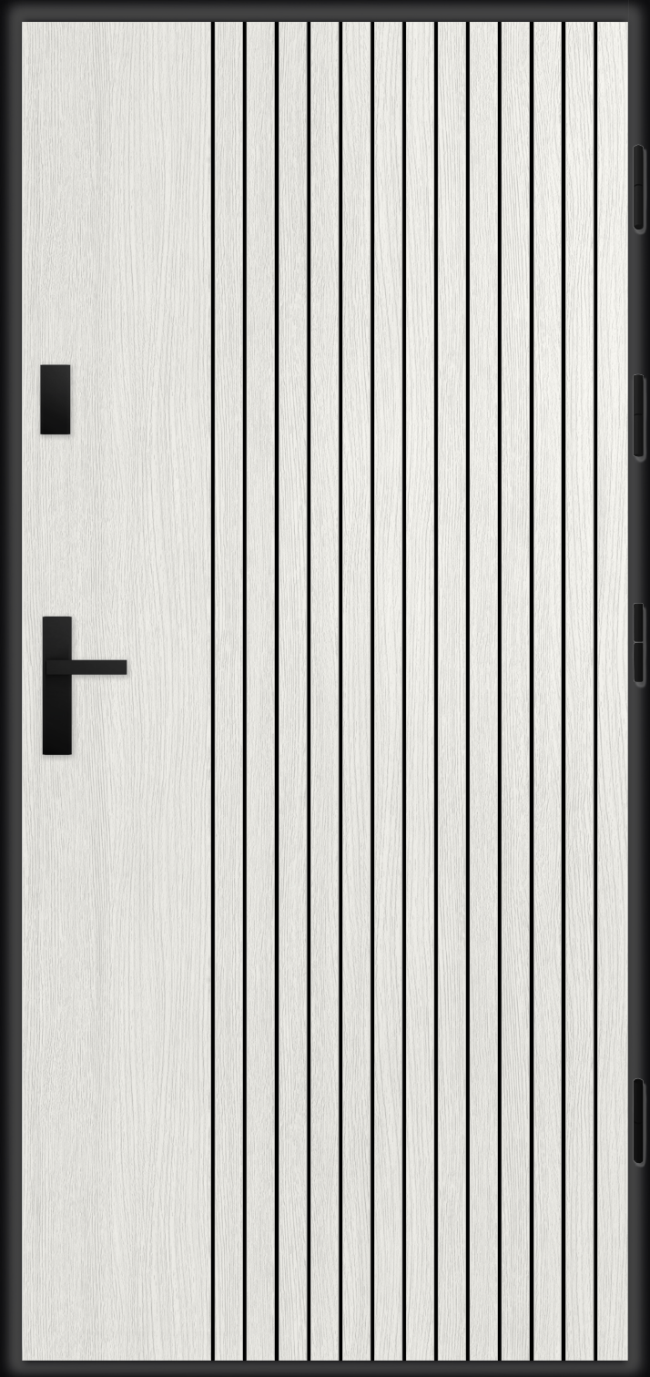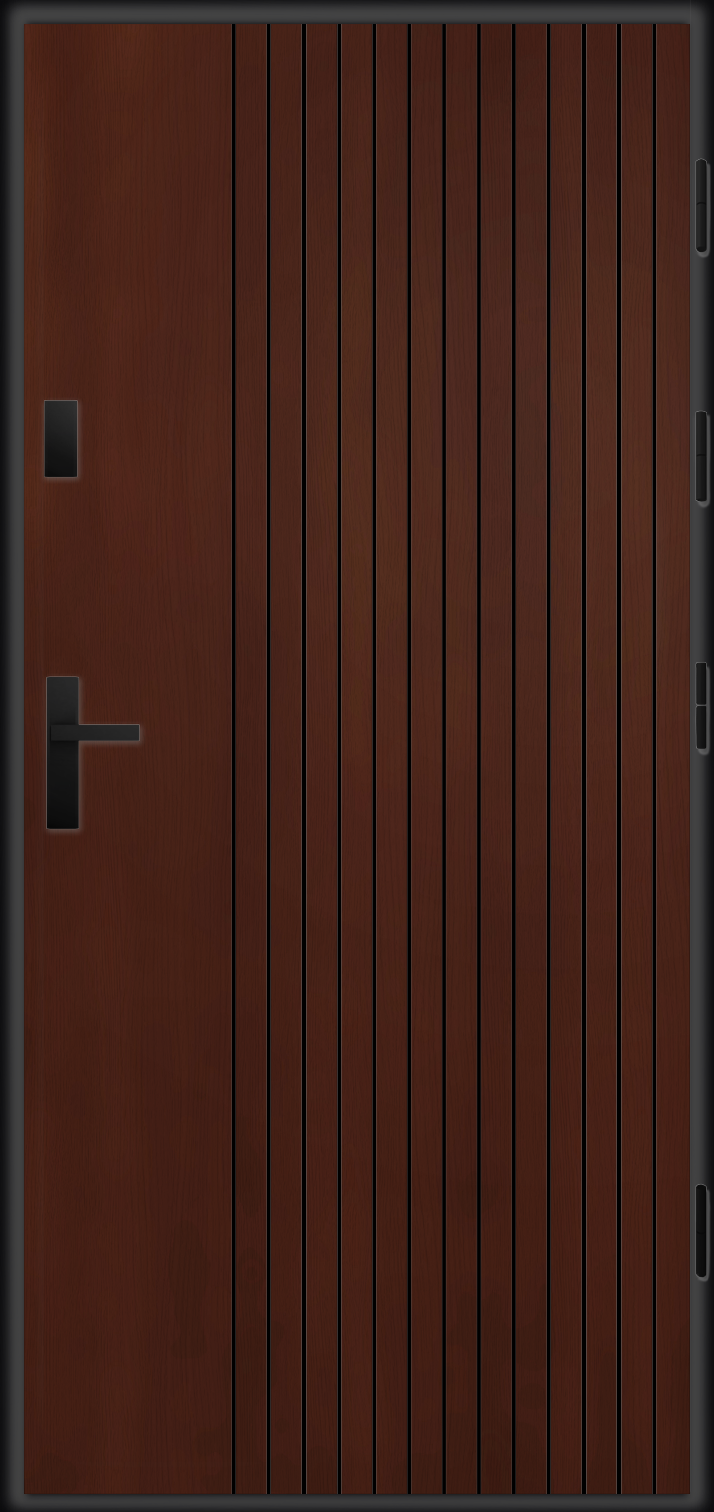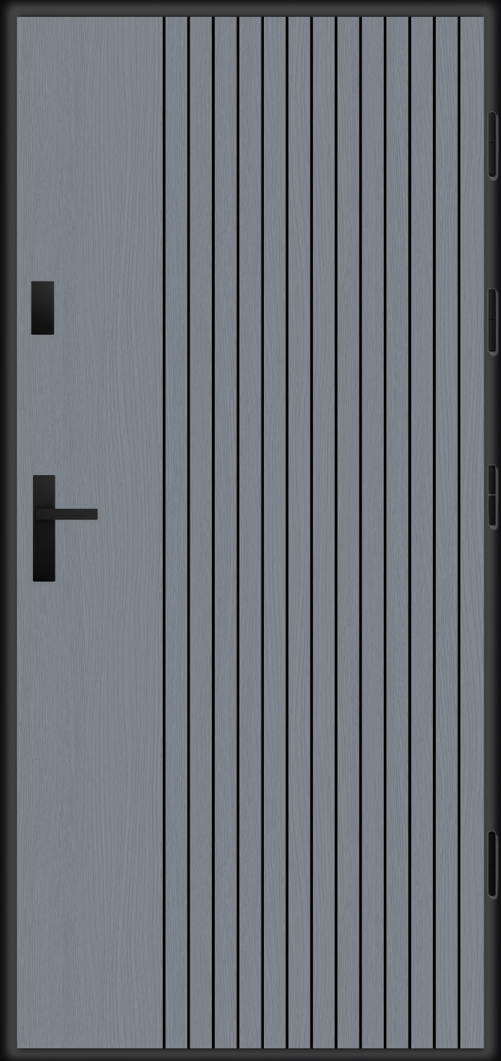 Model NEXA z kolekcji Vanguard to propozycja dla osób, które szukają drzwi o wyrazistym, nowoczesnym charakterze. Minimalistyczna forma, pionowe podziały i dekoracyjne intarsje tworzą efektowne wejście do domu, a produkcja na wymiar pozwala dopasować drzwi do projektu elewacji i konkretnego otworu.
