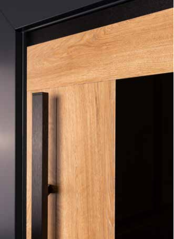 MARTOM GX 105/69 to model z kolekcji Smooth. Wokół skrzydła na stronie zewnętrznej umieszczone są cztery belki, które tworzą ramę skrzydła. W przypadku oklein drewnopodobnych kierunek słoi na elementach górnym i dolnym jest prostopadły do kierunku słoi na belkach pionowych i na wypełnieniu skrzydła, co podkreśla zamiar projektowy.