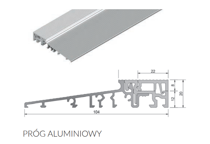 - próg drewniany z ochronnymi listwami aluminiowymi lub próg aluminiowy