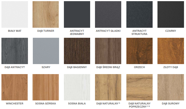 Dostępna kolorystyka drzwi