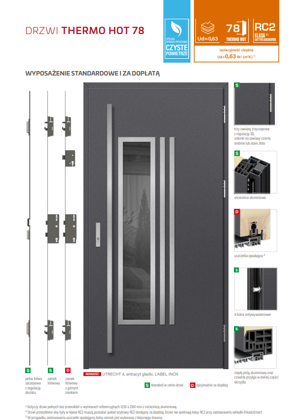 - uszczelka opadająca (w opcji za dopłatą) zapewnia dodatkowe uszczelnienie drzwi w części progowej