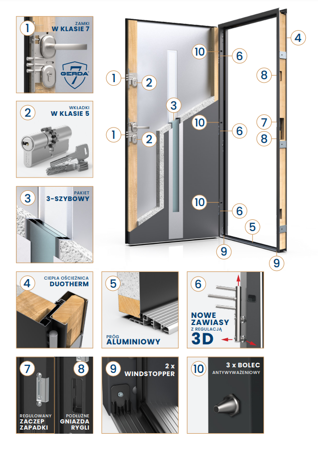 -zamek główny 3-ryglowy klasy 7 GERDA ZW 1000