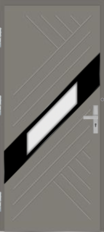 MARTOM 1LS 97/64 to model z kolekcji Diamond, zewnętrzna tafla szkła jest wykonana z dwóch szyb o grubości 3mm laminowanych (sklejonych za pomocą specjalnej folii w wysokiej temperaturze). Dzięki temu przeszklenie jest bardzo odporne i ma cechy szkła bezpiecznego. Nadrukowana czarna obwoluta znajduje się pomiędzy laminowanymi szybami, co zapewnia jej całkowitą ochronę przed uszkodzeniem. Tafla szklana o łącznej grubości 6mm ma szlifowane krawędzie. Eliminuje to możliwość zranienia o ostrą krawędź i nadaje przeszkleniu wyjątkowy wygląd. Tafla zewnętrzna jest zintegrowana z pakietem szybowym i jest mocowana do zewnętrznej powierzchni skrzydła. Od strony wewnętrznej skrzydła pakiet szybowy jest wykończony ramką z aluminium anodowanego na kolor czarny.