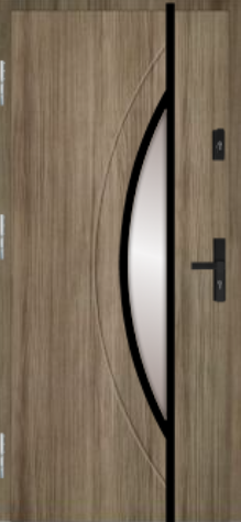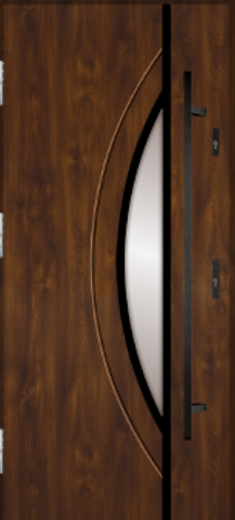 MARTOM J 40/35 to model z kolekcji Modern, czyli linii nowoczesnych drzwi z aplikacjami w kolorze stali nierdzewnej szczotkowanej lub czarnym. Wzór dobrze wpisuje się w nowoczesne elewacje i daje szerokie możliwości dopasowania koloru, detali oraz przeszklenia do stolarki okiennej i charakteru domu