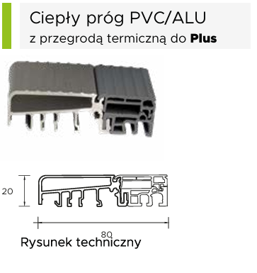 - Ciepły próg PVC/ALU z przegrodą termiczną.